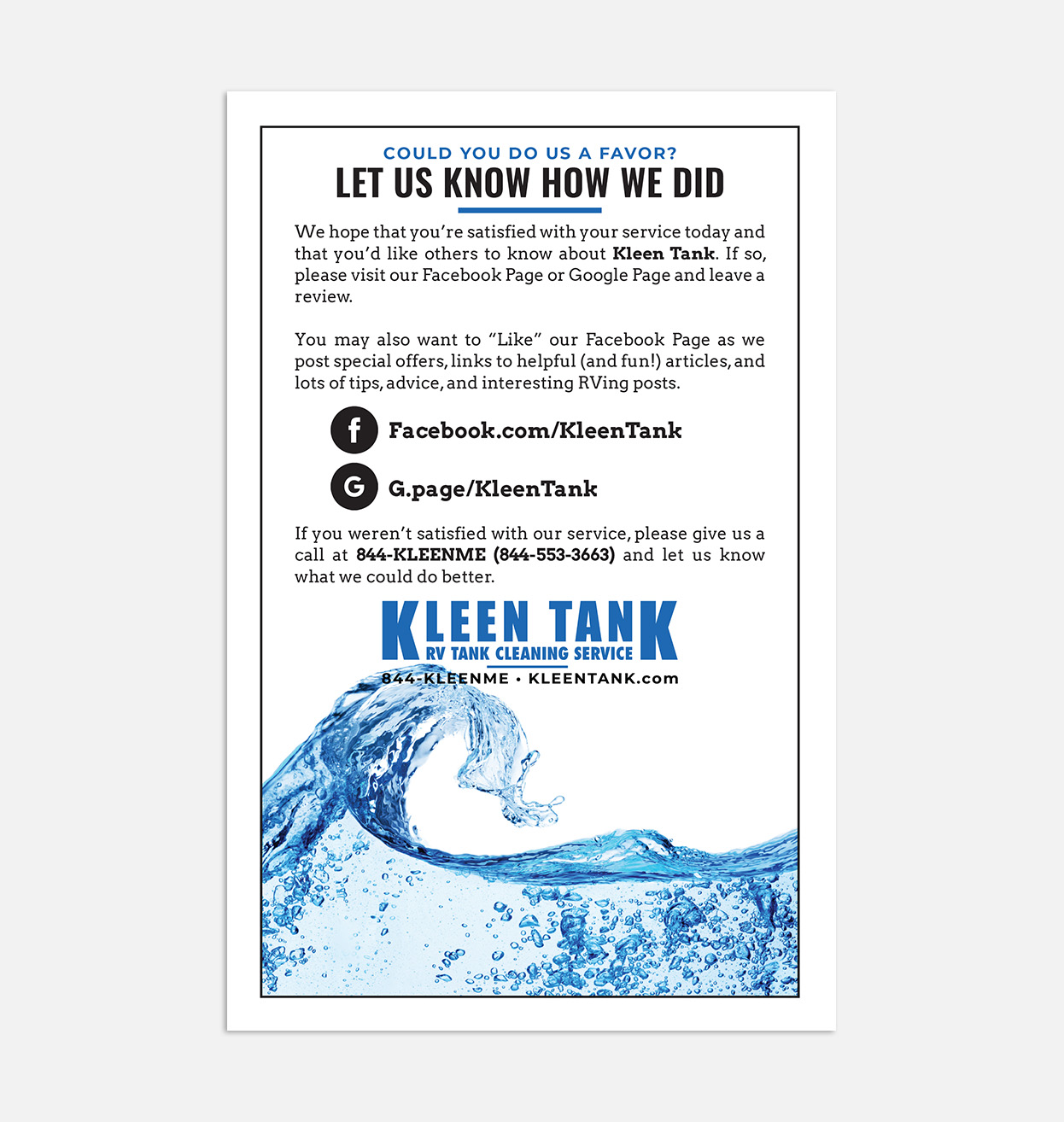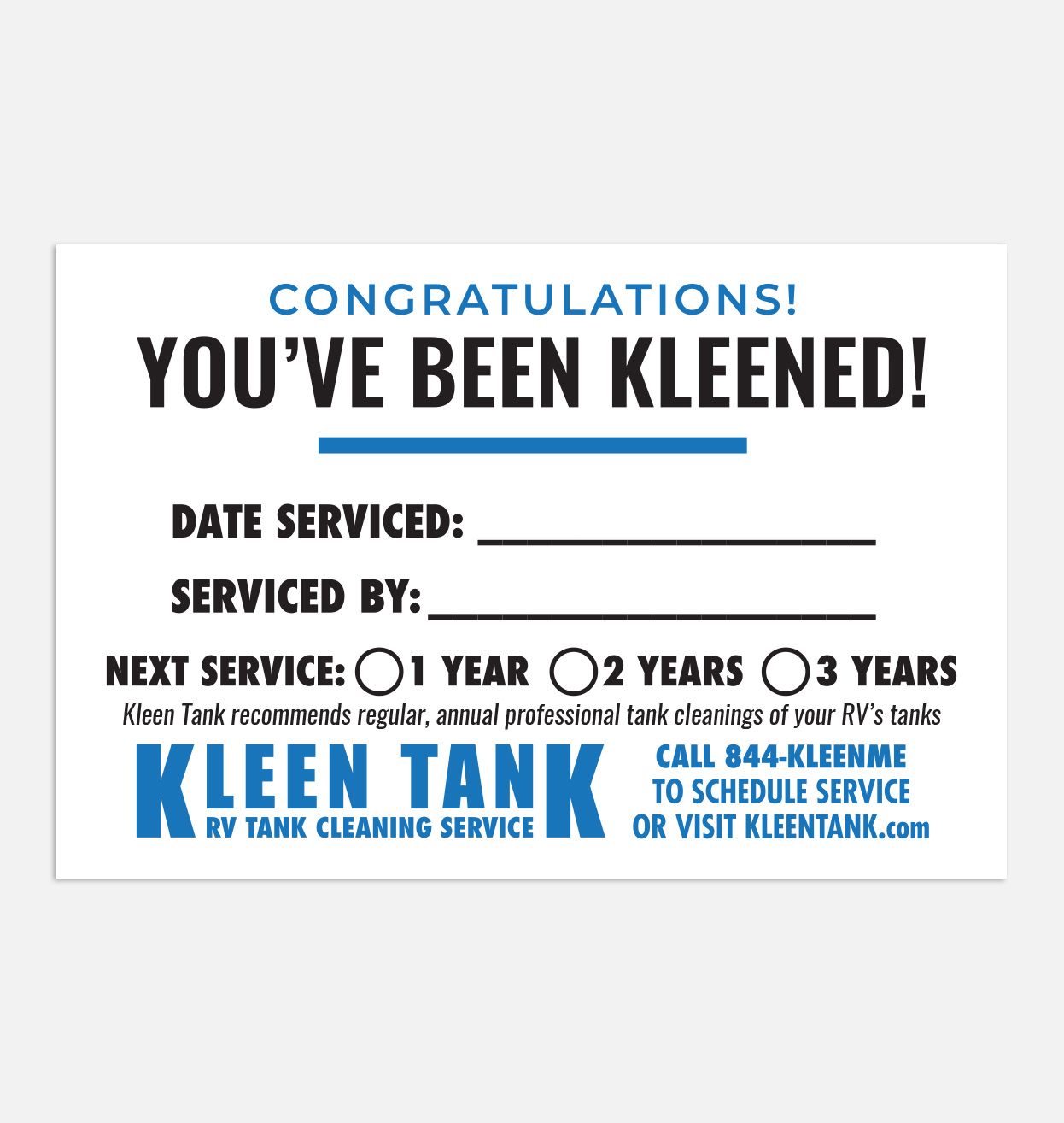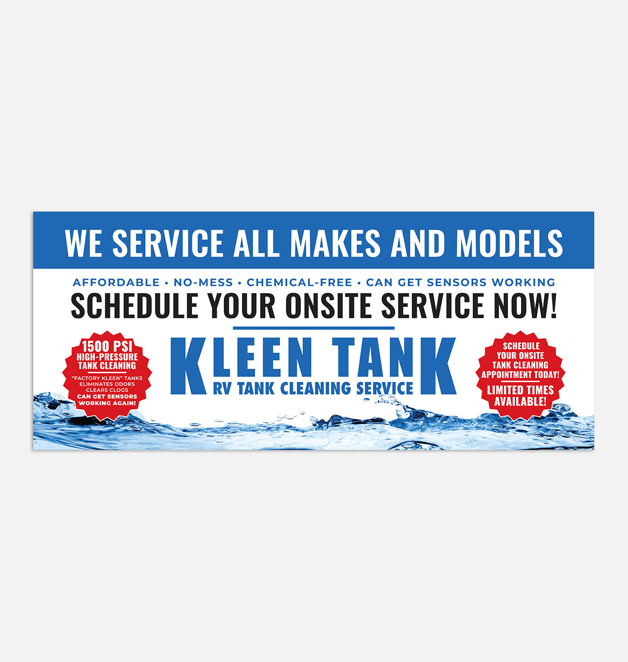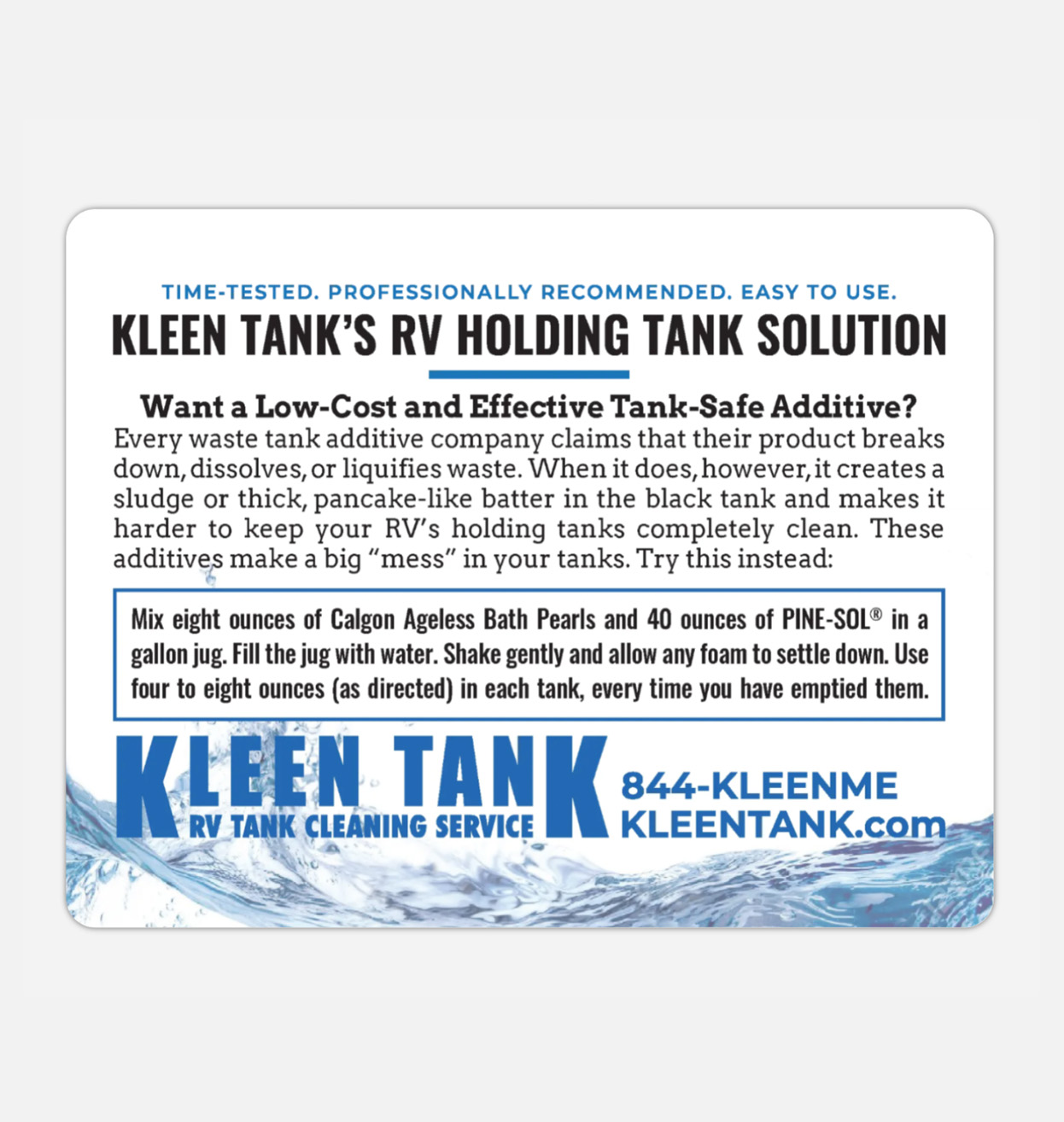 NOTE: All materials available for ordering and purchase on this dealer store are copywritten by Kleen Tank LLC and all rights thereof are reserved. The are made available only to current, active Kleen Tank dealers and any edits, copying, altering in part or whole, is prohibited under U.S. copyright law.